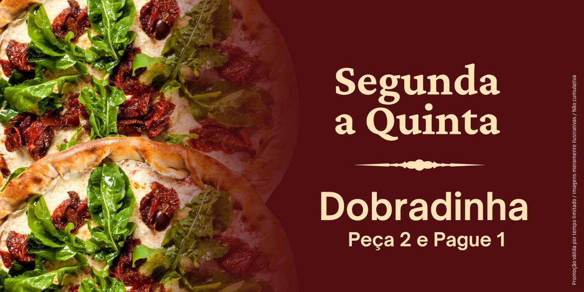 - Promoção Dobradinha de Pizza de 2º a 5º (exceto feriados e vésperas de feriados) das 18h as 20h